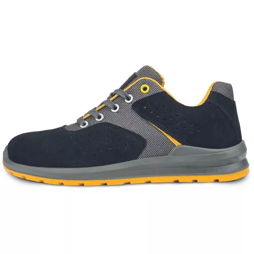 Kényelmes védőcipő kompozit orrmerevítővel és kompozit átszúrás elleni talplemezzel, az EN ISO 20345:2022 szabvány szerinti S1 PS védelmi kategóriában tanúsítva. Antisztatikus talpbetéttel. Kétrétegű PU/PU talpszerkezet sarokrészben energiaelnyeléssel. Tartós, hasított bőr felsőrész oxford szövettel kombinálva, a perforációnak köszönhetően fokozott légáteresztéssel. Kiváló választás beltéri munkákhoz, például az autóipar, logisztika vagy ipari termelés területén. Fémmentes kivitel.