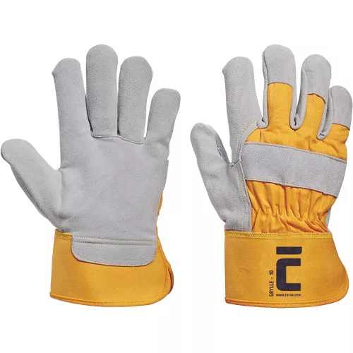 • kombinált védőkesztyű marha hasított bőrből • pamut kézfej, 7 cm merev mandzsetta
