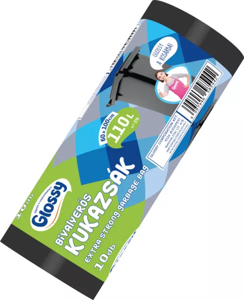 Glossy bivaly erős szemeteszsák (kukazsák) 110 literes, 60x100 cm, 25 mikron vastag, 10 db/tekercs, 15 tekercs/karton