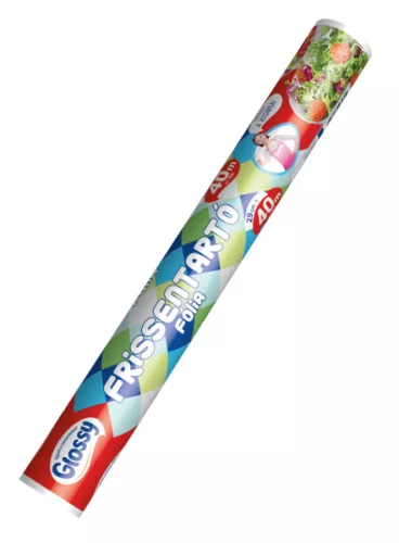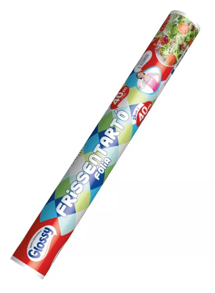 GLOSSY Frissentartó fóliák (folpack) kiváló tapadási és nyújtható tulajdonsággal rendelkeznek, pezsgő színben, víztiszta, íz-, és szag semleges tulajdonságával az élelmiszeripar, háztartások egyik alapvető csomagoló termékévé vált. Felhasználása egyszerű, gyors, higiénikus és megőrzi az ételek aromáját, frissességét. Felhasználási területe rendkívül sokoldalú, csomagolás, tárolás, frissentartás, fagyasztás. Szélesség: 29 cm, hosszúság: 40 méter, vastagság: 9 mikron, anyag: PVC.