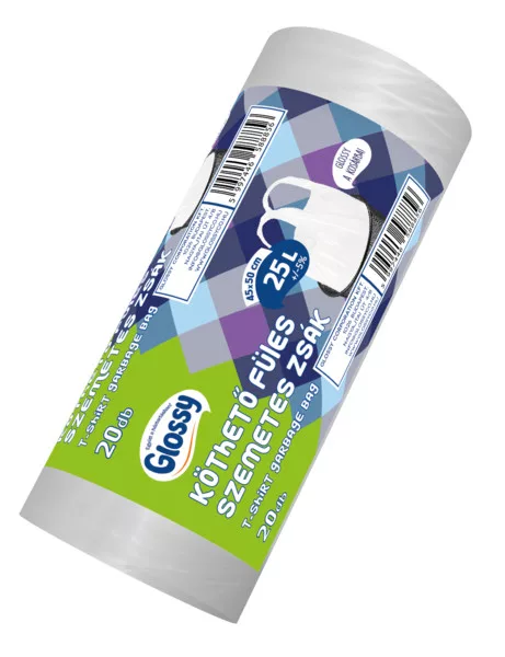 Glossy köthető füles bélelő szemeteszsák (kukazsák) 25 literes, 45x50 cm, 10 mikron vastag, 20 db/tekercs, 25 tekercs/karton