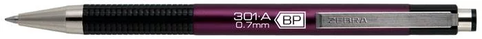Golyóstoll, 0,24 mm, nyomógombos, mályva tolltest, ZEBRA "F-301 A", kék