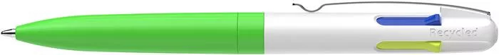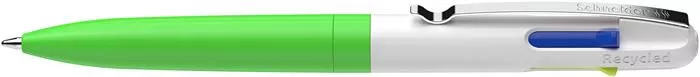 Golyóstoll, 0,5 mm, nyomógombos, négyszínű, SCHNEIDER "Take 4 Neon", zöld-fehér