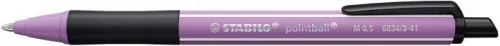 Golyóstoll, 0,5 mm, nyomógombos, szürkéslila tolltest, STABILO "Pointball Wildflowers", kék
