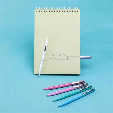 Golyóstoll, 0,5 mm, nyomógombos, vegyes pasztell tolltest, SCHNEIDER "K15", kék