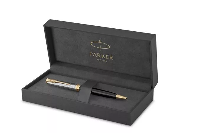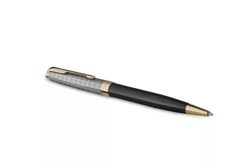 Golyóstoll, 1 mm, metál fekete tolltest, arany klip, PARKER "Royal Sonnet Premium", fekete