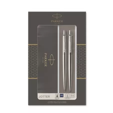Golyóstoll és nyomósirón szett, díszdoboz, rozsdamentes acél tolltest, PARKER "Royal Jotter", kék