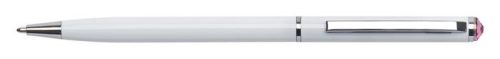 Golyóstoll, fehér "SLIM", rózsaszín SWAROVSKI® kristállyal, 13 cm, ART CRYSTELLA®