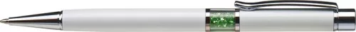 Golyóstoll, fehér, középen peridot zöld SWAROVSKI® kristállyal töltve, 14cm, ART CRYSTELLA®