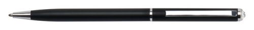 Golyóstoll, fekete "SLIM", fehér SWAROVSKI® kristállyal, 13 cm, ART CRYSTELLA®