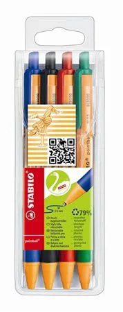 Golyóstoll készlet, 0,5 mm, nyomógombos, STABILO "Pointball", 4 különböző szín
