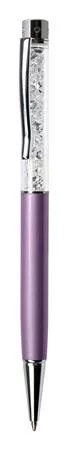 Golyóstoll, orgonalila, felül fehér SWAROVSKI® kristályokkal töltve, 14 cm, ART CRYSTELLA®