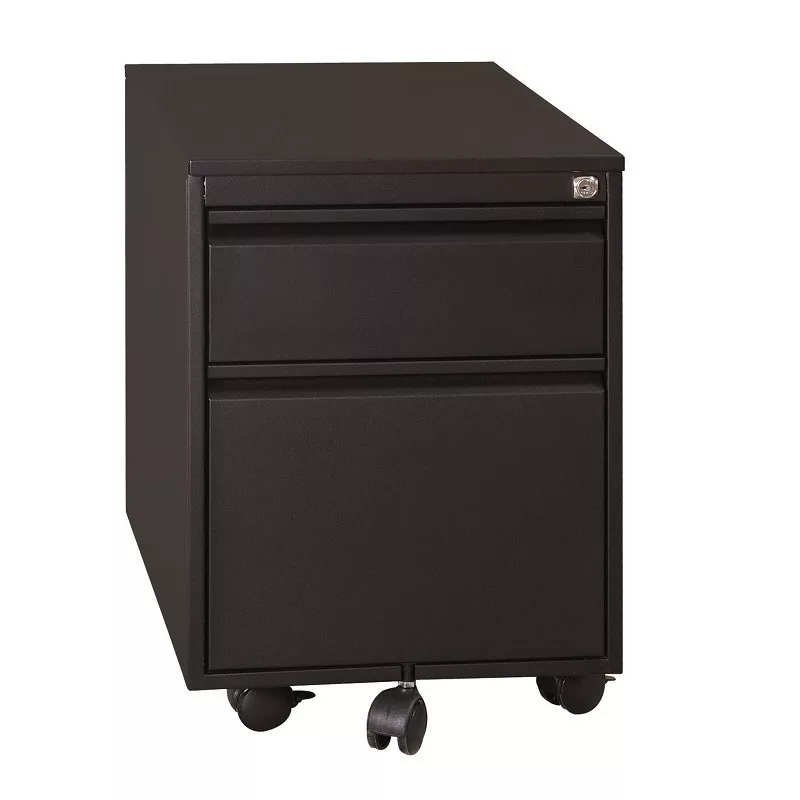 Guruló fém fiókos konténer, 2 fiókos, fém fedlappal, toll tartóval, 550mmx390mmx590mm, Fekete/fekete