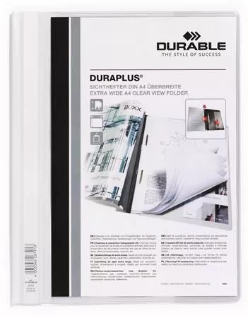Gyorsfűző, A4, széles, panorámás, DURABLE "DURAPLUS®", fehér