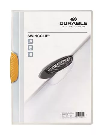 A SWINGCLIP egy vonzó, fiatalos klipmappa, minden típusú prezentációhoz, irathoz, rugalmas polipropilénből. -egyszerű és gyors dokumentumkezelés az oldalra kihajtható műanyag klipnek köszönhetően -színes vagy áttetsző kapoccsal -A4 formátumú dokumentumokhoz, pl. ajánlatokhoz, megbeszélési és oktatási dokumentumokhoz -lyukasztás nélküli dokumentumkezelés -lefűző szerkezet: elliptikus, kihajtható műanyag klip -lefűző szerkezet színe: sárga -előlap színe: áttetsző -hátlap színe: áttetsző -a dokumentum védett a naptól -külső méretek: 218 x 306 x 8 mm (szé x ma x ho) -kapacitás: 30 lap -formátum: A4 -irány: álló -anyaga: műanyag Itt megtekinthető és letölthető a termékadatlap. Itt megtekinthető és letölthető a környezetvédelmi adatlap. Gyártó/első EU forgalmazó elérhetősége:  DURABLE Hunke & Jochheim GmbH & Co. KG Westfalenstrasse 77-79, D- 58636 Iserlohn, Germany info@durable.de www.durable.de