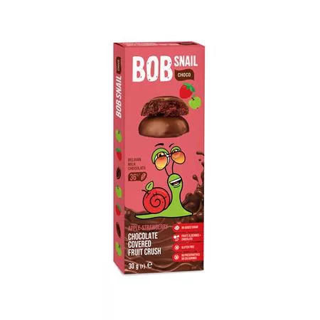 Gyümölcs snack, 30 g, BOB SNAIL, alma-eper tejcsokoládéban