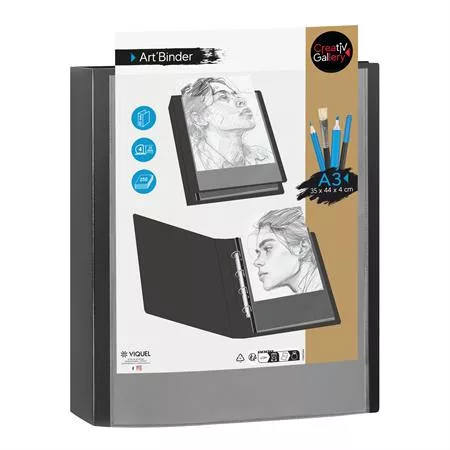 Gyűrűs könyv, 4 gyűrű, 40 mm, A3, PP, VIQUEL "Creative Gallery", fekete