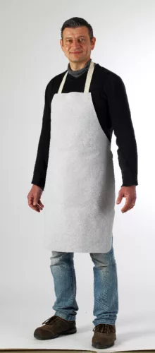 * vastag, kiváló minőségű, egybeszabott, natúr marha hasítékbőr pamut nyak- és derékpánttal, Kevlar cérnával* közvetlen lánghatás ellen 10 sec időtartamig, olvadt fémek fröccsenése ellen biztosít védelmet* mérete: 60 x 90 cm (56600), 70 x 110 (56602), 90 x 120 (56605)