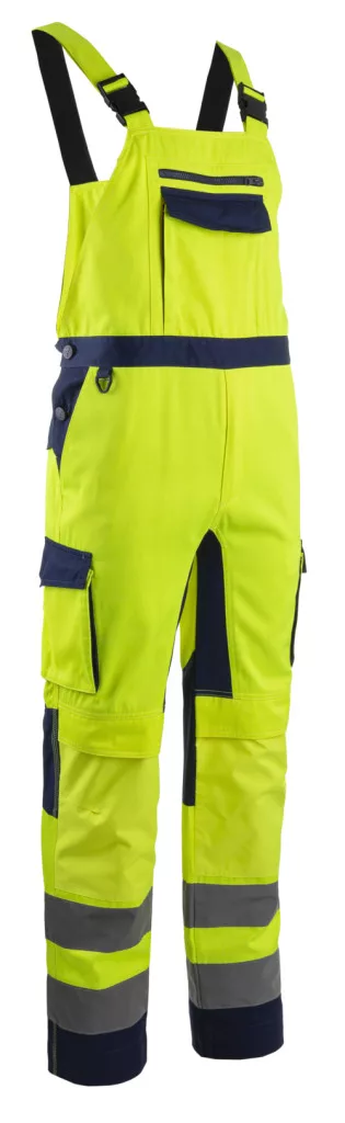 Hibana hi-víz sárga jó láthatóságot biztosító melles nadrág* Twill: 60% pamut / 40% PES – 270 g/m2* Sztreccs: 90% PA / 10% elasztán – 270 g/m2* Oxford: 100% PES - 300D* 7 cm széles fényvisszaverő csíkok – varrott és mikrogyöngyös technológia - 2 – 2 a száron* Állítható rugalmas vállpántok, műanyag csatok* Oldalt 4 műanyag gombbal záródik* Magasított derékvonal rugalmas betéttel* 1 cipzáras mellzseb* 1 rekeszes, zsebfedővel fedett mellzseb* 2 tépőzáras cargo zseb* Sztreccs betét a lábköznél és a térdek mögött* Oxford anyagú, fentről nyitott térdvédő zseb* Tripla biztonsági varrás* 5 cm-es lehajtási lehetőség a nadrág száránRegular szabás25 mosásSzín: 5HBB160 – sárga, 5HBB170 narancsEN 14404: Type 2EN 20471