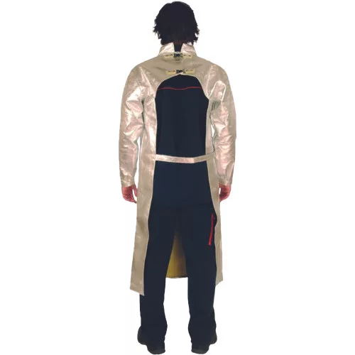 • hőálló védőruha aluminizált aramid szövetből. Védelmet nyújt gyújtóláng, kontakt- és sugárzó hővel szemben, valamint olvadt fémcseppek ellen. Mellső részen és a karokon fed, háta nyitott, hátul kapcsolódik • méretek: 03110047 - 1453 BARA köpeny 135cm I 03110052 - 1453 BARA köpeny 110 cm • a hőálló köpeny külső védőruhaként viselhető, azonban az alatta viselt munkaruha is legyen lángmentes. • további kiegészítők rendelhetőek, mint hővédő kámzsa, kesztyű, nadrág, vagy láb- és lábszárvédő • védelmi teljesítmények: EN ISO 11612 A1 B1 C3 D3 E3 F1