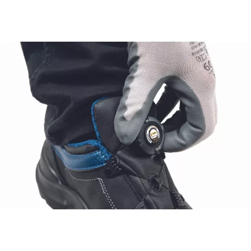 • biztonsági félcipő acél lábujjvédővel és talpátszúrás elleni védelemmel, kétrétegű PU/PU talppal • kiváló minőségű színbőr felsőrész • tárcsás fűzőfeszítő • kivételes légáteresztő képességű Airnet hálós bélés
