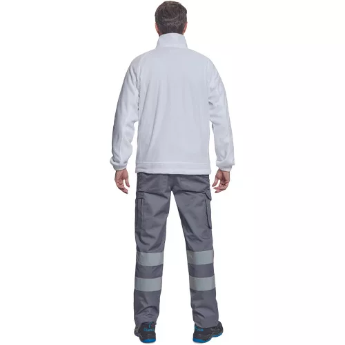 • férfi munkanadrág 7 cm széles fényvisszavető csíkokkal • 2 oldalsó zseb + 1 érmezseb • 2 oldalzseb • 2 hátsó zseb • rugalmas oldalsó betétek a derékon • meghosszabbítható szárhossz • 65% PES/35% pamut, 195 g/m2