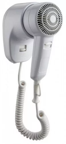 Szállodai hajszárító, mely falra szerelve használható. Gyors szárítás, két állítás. Hőmérséklet kapcsoló. Könnyű kivitel, egyszerű kezelés. Hotelbe, apartmanba, és egyéb szállást biztosító objektumba is kiváló választás. Megbízható működés.