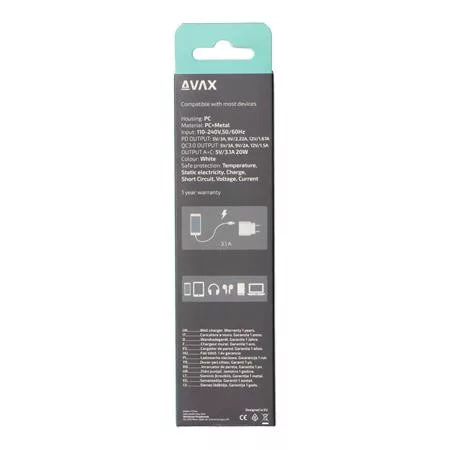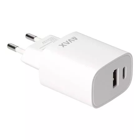 Hálózati töltő, USB-A + USB-C, 20W, AVAX "CH320 Speedy", fehér