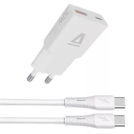 Hálózati töltő + USB-C - USB-C kábel, 1,5 m,  AVAX "CH6413", fehér