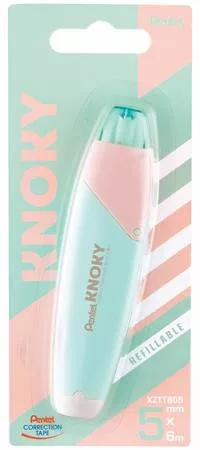 Hibajavító roller, 5 mm x 6 m, utántölthető, PENTEL "Knoky", világoszöld-barack