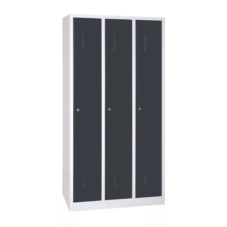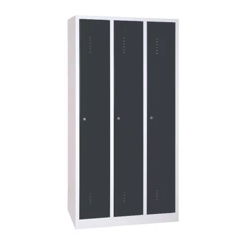 Hosszúajtós acél öltözőszekrény, 3 rekeszes, 1800mmx900mmx500mm, Szürke/antracit
