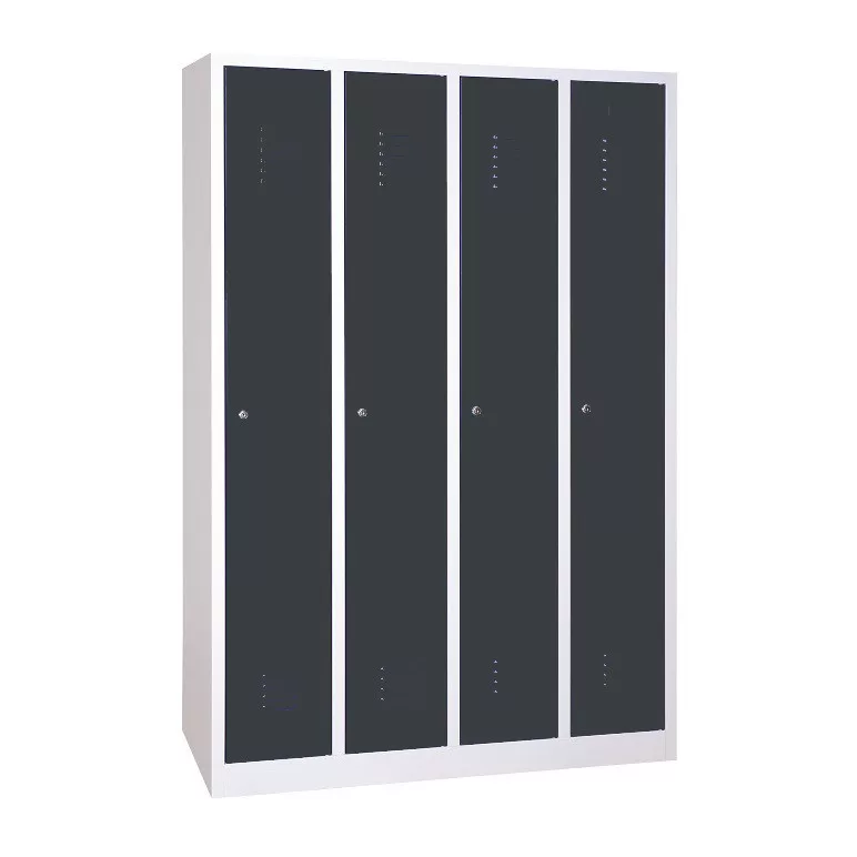 Hosszúajtós acél öltözőszekrény, 4 rekeszes, , 1800mmx1170mmx500mm, Szürke/antracit