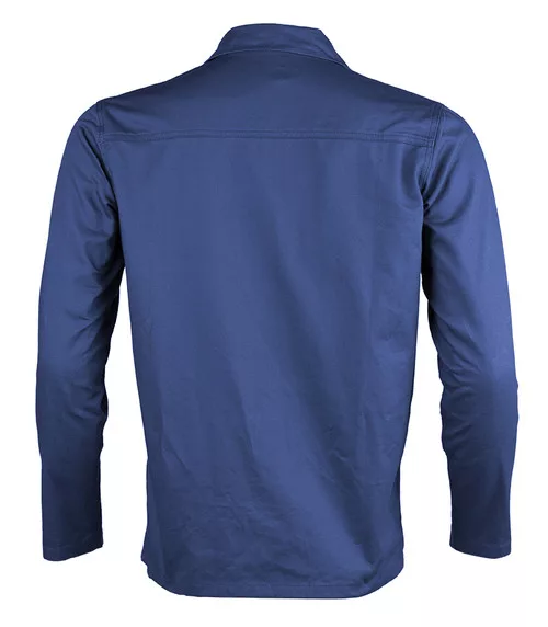 * 245 g/m2 kopásálló, lánckötésű anyag, 35% pamut, 65% poliészter, egyenes fazonú, kényelmes, nagy szakítószilárdságú, testbarát anyagból készült kabát* egyenes fazonú kabát rejtett gombolással, hagyományos gallérral* két rávarrt oldal-, és egy rávarrt felső zseb* végig dupla varrás, megerősített hátrész biztonsági tripla varrással