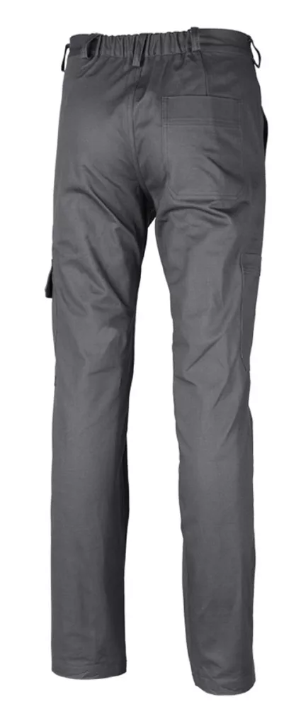 * 245 g/m2 kopásálló, lánckötésű anyag, 35% pamut, 65% poliészter, egyenes fazonú, kényelmes, nagy szakítószilárdságú, testbarát anyagból készült deréknadrág* széles, erős övbújtatók, cipzáras slicc, gombbal záródó derék hátul gumírozott betéttel* két oldal-, egy tépőzáras rátétes-, egy szerszám és egy farzseb* biztonsági tripla varrás végig a szár mindkét oldalán