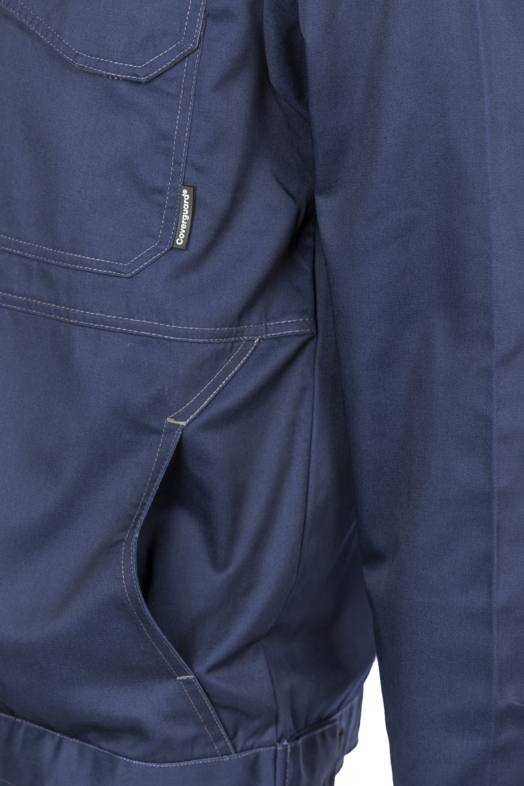 300 g/m2 vastag, kopásálló, sávolykötésű anyag kék színben, 60% pamut, 40% poliészter,ideális intenzív ipari használatra,Egyenes szabású, dzsekifazonú kabát, patenttal állítható mandzsettával és tépőzárral állítható derékkal,Teljesen fémmentes, megerősített váll- és hátrész,Állig érő húzózár, szennyeződésektől védő, tépőzáras cipzárfedővel, álló gallérral, sok zsebbel