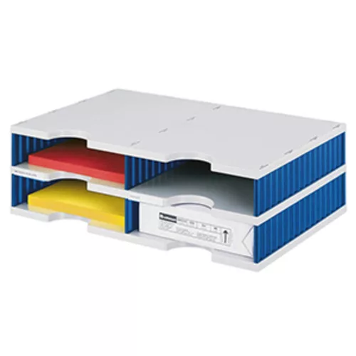 Iktatórendszer, kiegészítő modul, 2x2 rekesz, széxméxma 485x331x140 mm, polisztirol, szürke/kék