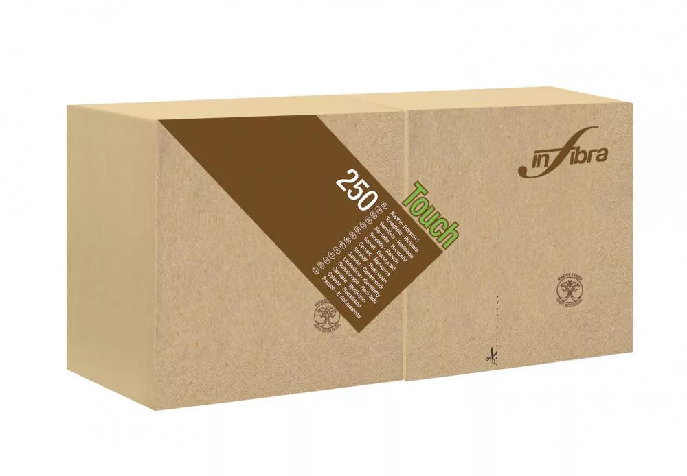 Infibra Szalvéta Madre Terra, 2 rétegű, 24x24cm, barna, 100% eco, 250lap/csomag