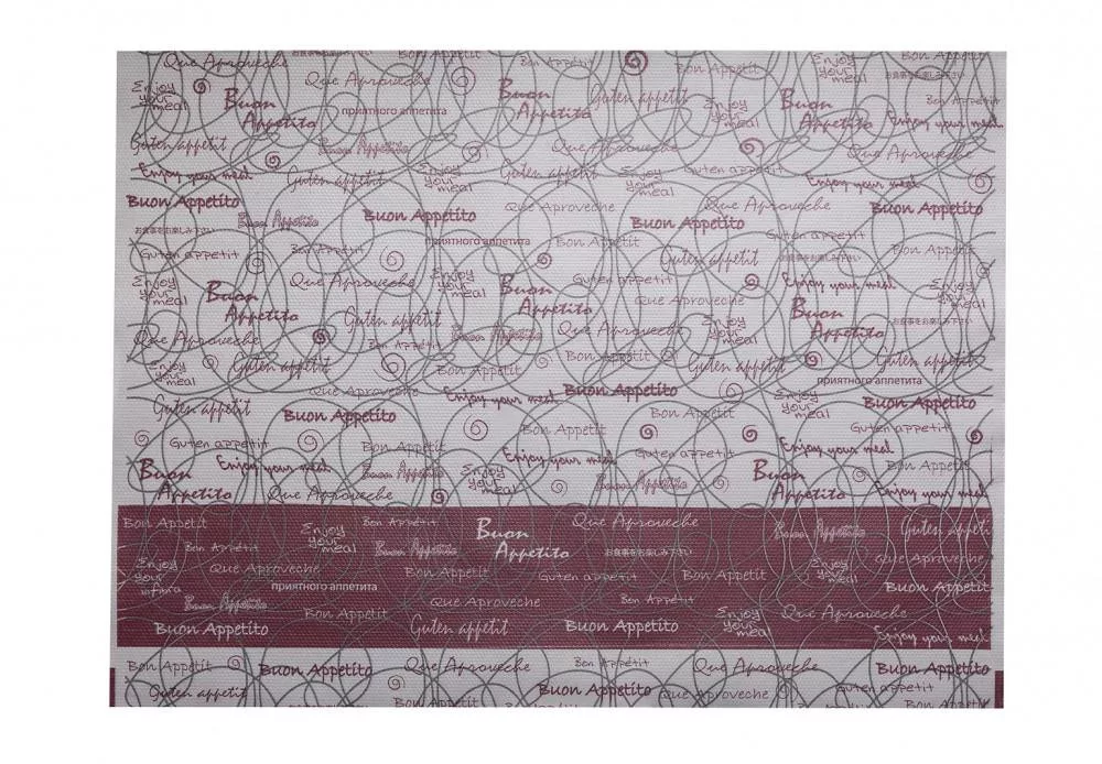 - fehér alapon, bordó "Jó étvágyat" felirat különböző nyelveken