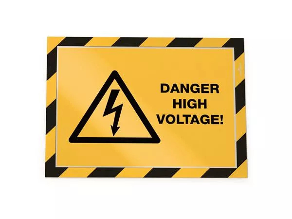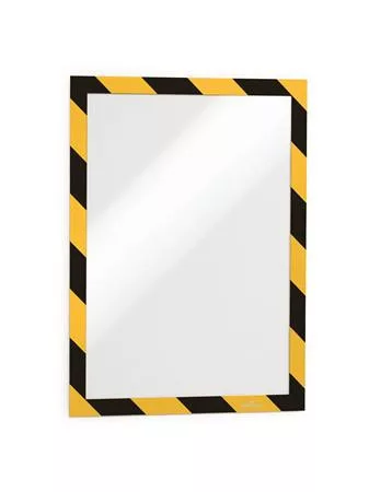 Infokeret, A4, öntapadó háttal, DURABLE "DURAFRAME SECURITY", sárga-fekete