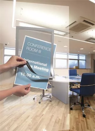 A DURAFRAME® segítségével profin és kényelmesen helyezhetjük ki dokumentumainkat bármilyen sima, kemény felületre, például ablakra, iratszekrényre vagy ajtóra.
