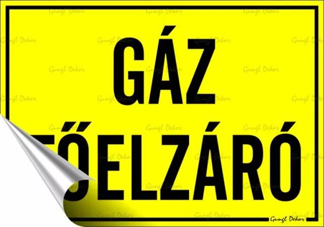 Információs matrica, 11,6x16,6 cm, "Gáz főelzáró"