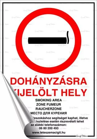 Információs matrica, 21x30 cm, "Dohányzásra kijelölt hely"
