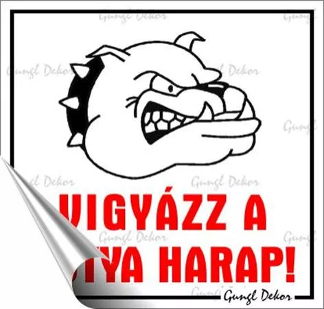 Információs matrica, 8,7x8,3 cm, "Vigyázz a kutya harap!"