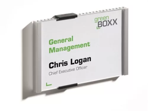 Innovatív információs tábla, alumínium hátlappal, tükröződésmentes akrill fedlappal, könnyű rögzítéssel.