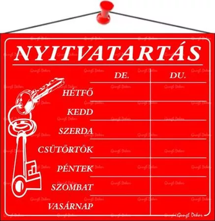 Információs tábla, 20x17,5 cm, "Nyitvatartás", piros