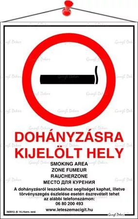 Dohányzásra kijelölt hely információs tábla