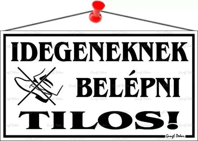 Idegeneknek belépni tilos! információs tábla