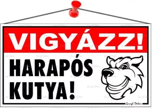 Információs tábla, 22,5x12,5 cm, "Vigyázz! Harapós kutya!"