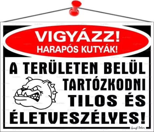 Információs tábla, 35x25 cm, "Vigyázz harapós kutyák!"