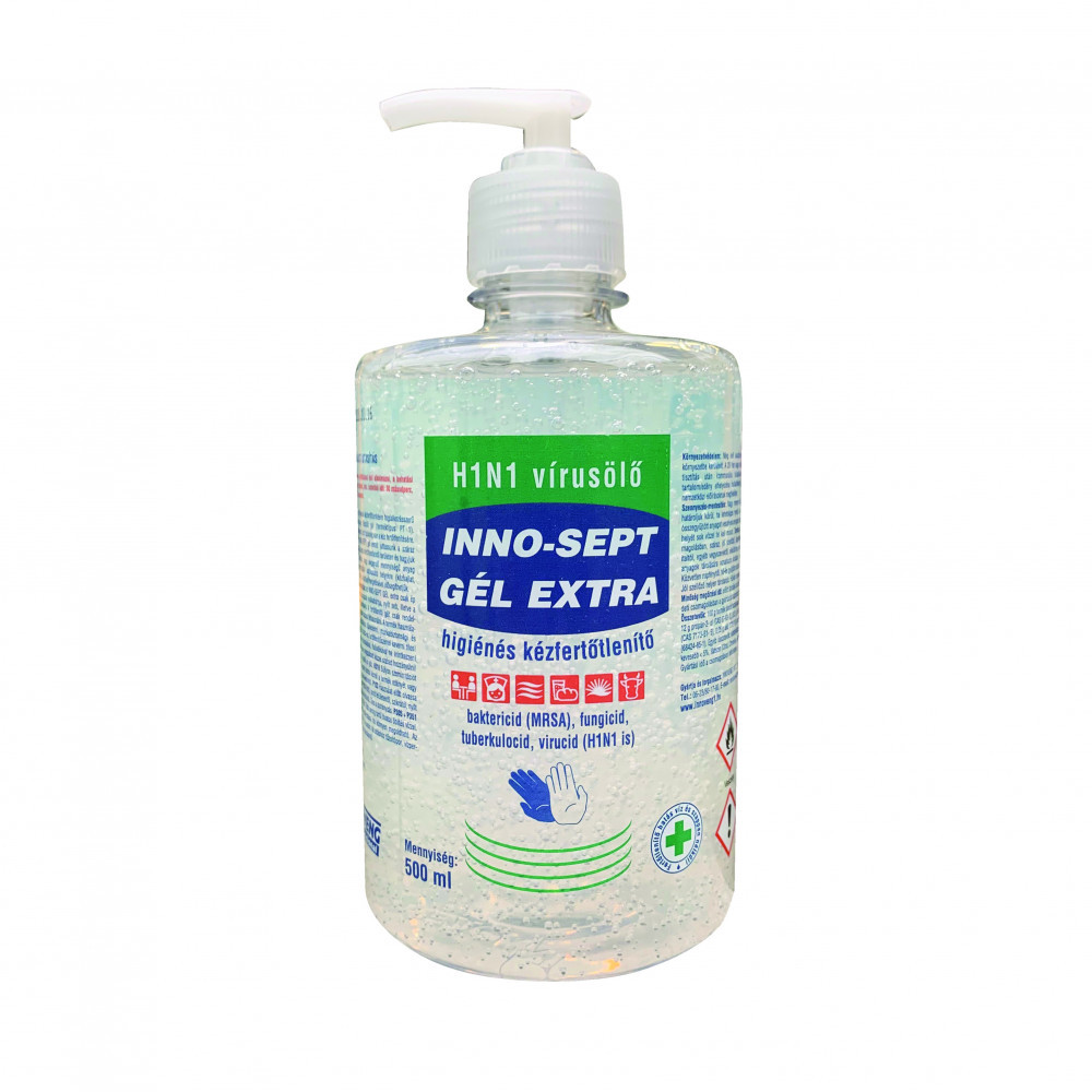 Felhasználási terület és mód: Higiénés kézfertőtlenítésre, foglalkozásszerű és lakossági felhasználók részére készült gél (terméktípus: PT 1). Alkalmazható minden olyan területen, ahol szükség van a kéz fertőtlenítésére. Az adagoló flakonból 3-5 ml INNO-SEPT gél extrát juttassunk a száraz tenyérbe, egyenletesen dörzsöljük szét a fertőtlenítendő területen és hagyjuk a kezeket megszáradni. Ügyeljünk, hogy elegendő mennyiségű anyag kerüljön a fertőtlenítés szempontjából kritikusabb helyekre (kézhajlat, körömágyak, stb.). A kéz szárítását a kézfejek lengetésével elősegíthetjük.
